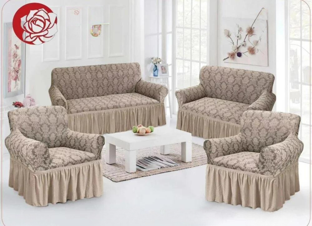 أضفي جاذبية أنيقة إلى كنب منزلك بالحصول على هذا الطقم الرائع. مكون من أربع قطع بنمط جاكار وتفاصيل كشكش ولون آسر يضفي سحر ملكي على التصميم. قابل للتمدد...